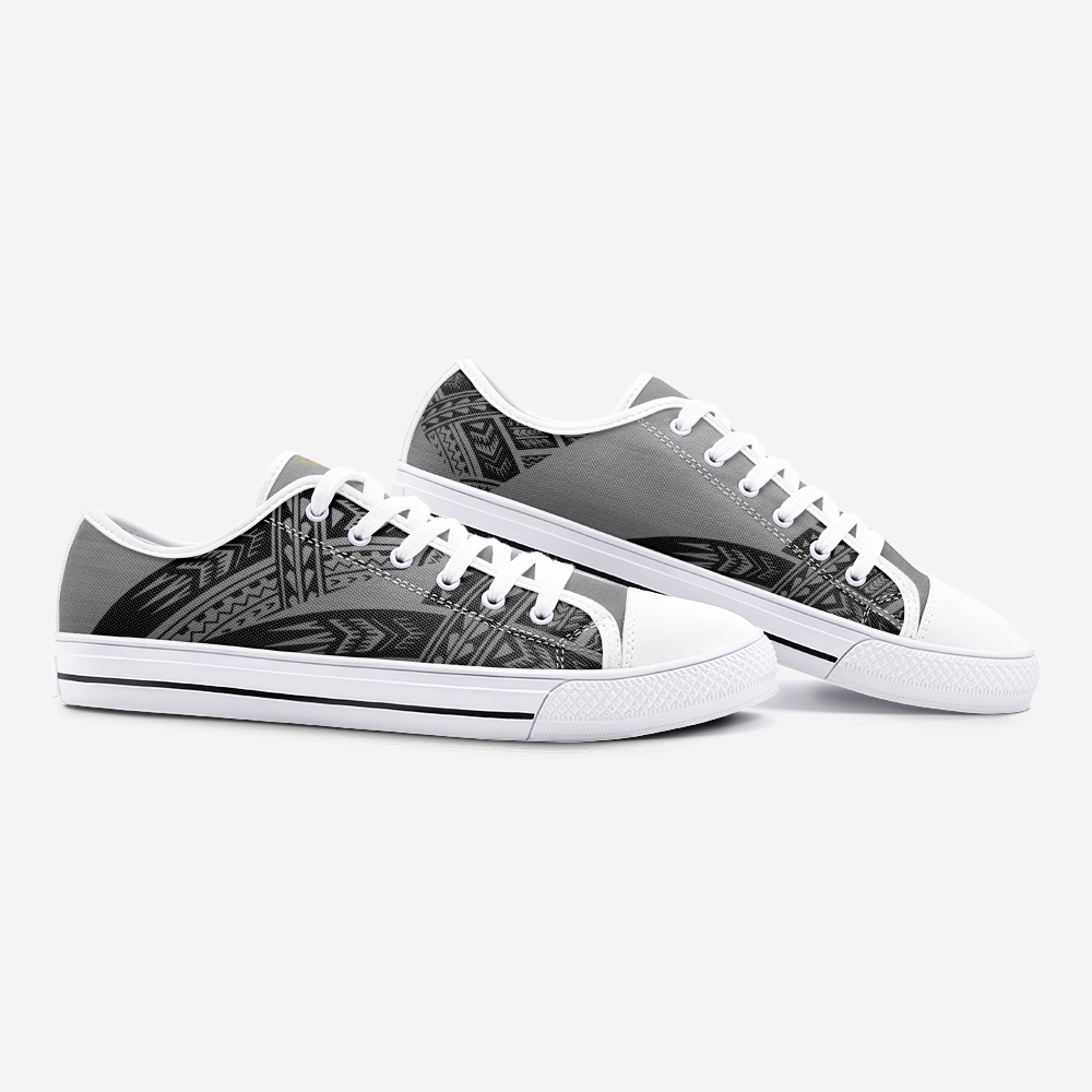 This sneaker is our everyday nod to that legacy. Clean gray canvas, bold black patterning inspired by traditional tatau lines, and a classic low-top look that goes with everything. It’s subtle from a distance… and unmistakable up close (the best kind of statement).