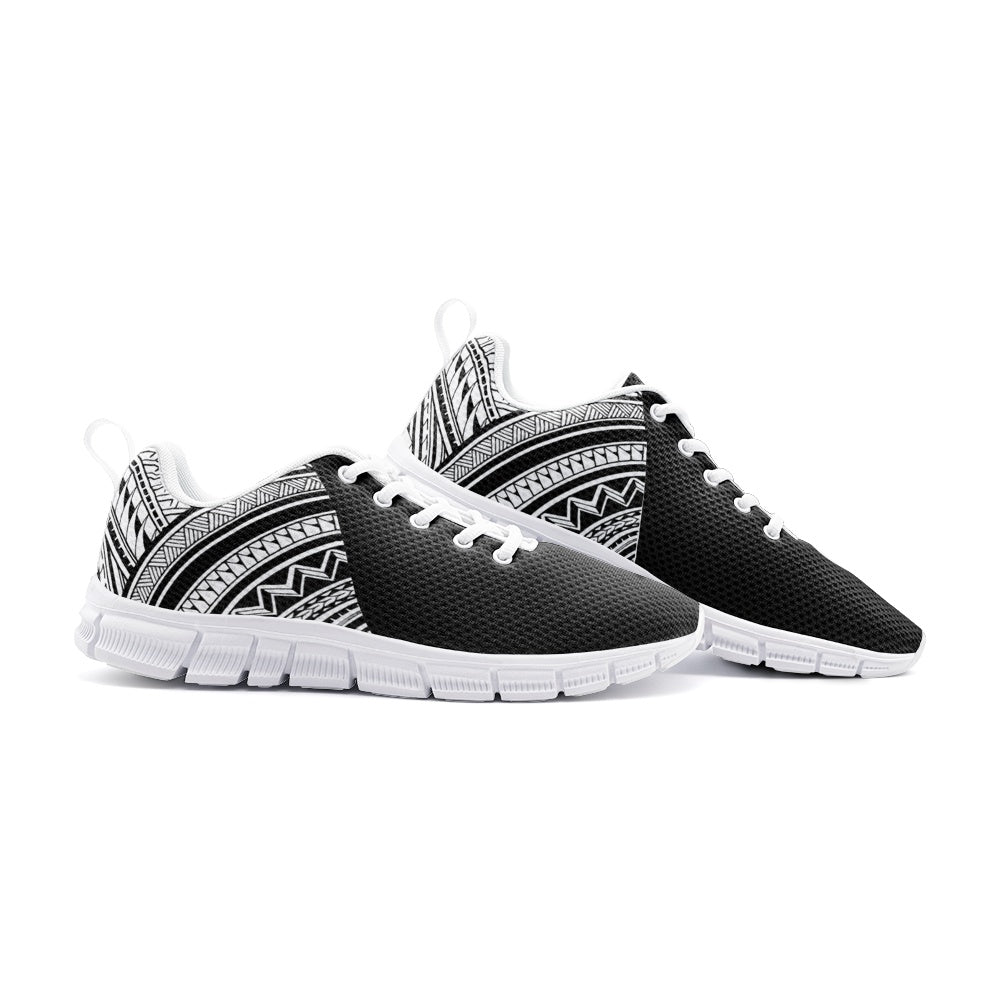 Samoa Black is made for movement with meaning. This athletic sneaker pairs a clean black mesh upper with a bold tatau-inspired heel wrap, so even the simplest color-way still carries culture. Lightweight and breathable with a snug lace-up fit, it's built for everyday hustle, gym days, errand runs and everything in between. Quiet from the front, rooted from the back.